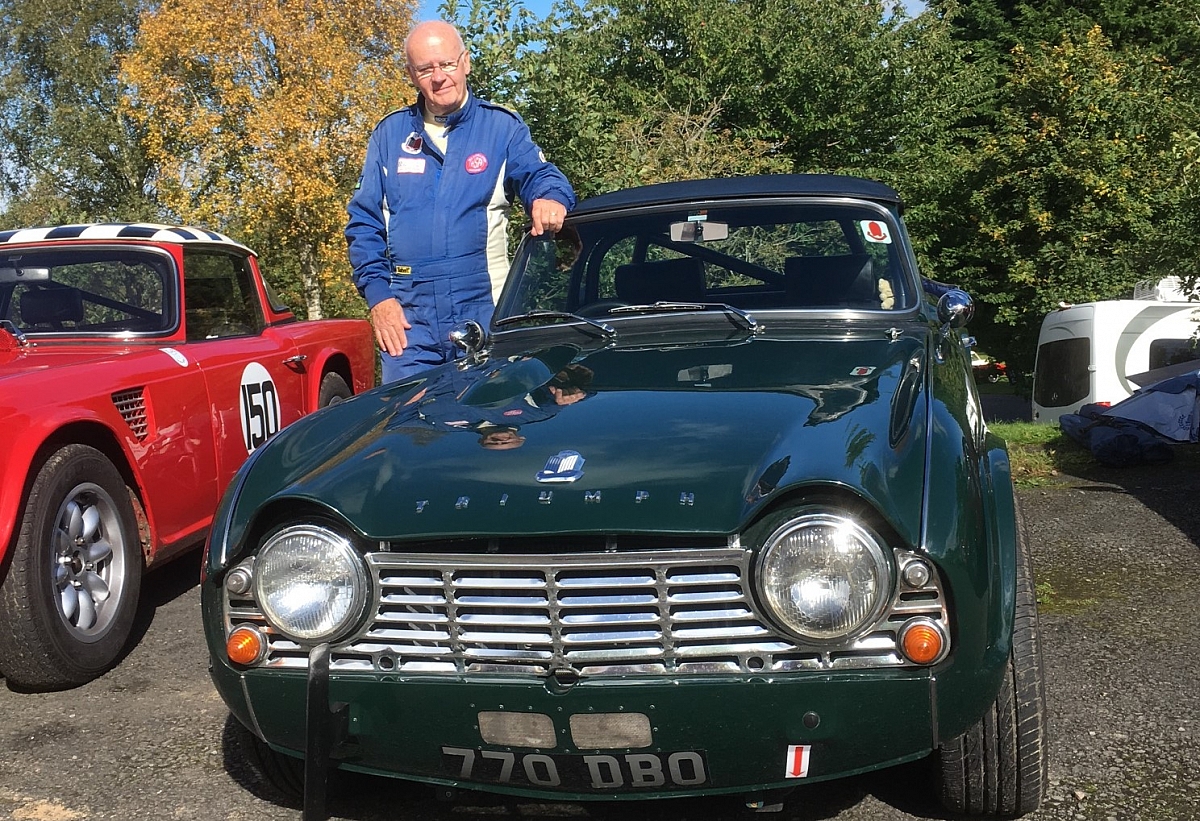 He bought his current car, a TR4, in 2016 and has been progressively improving it for competition work.