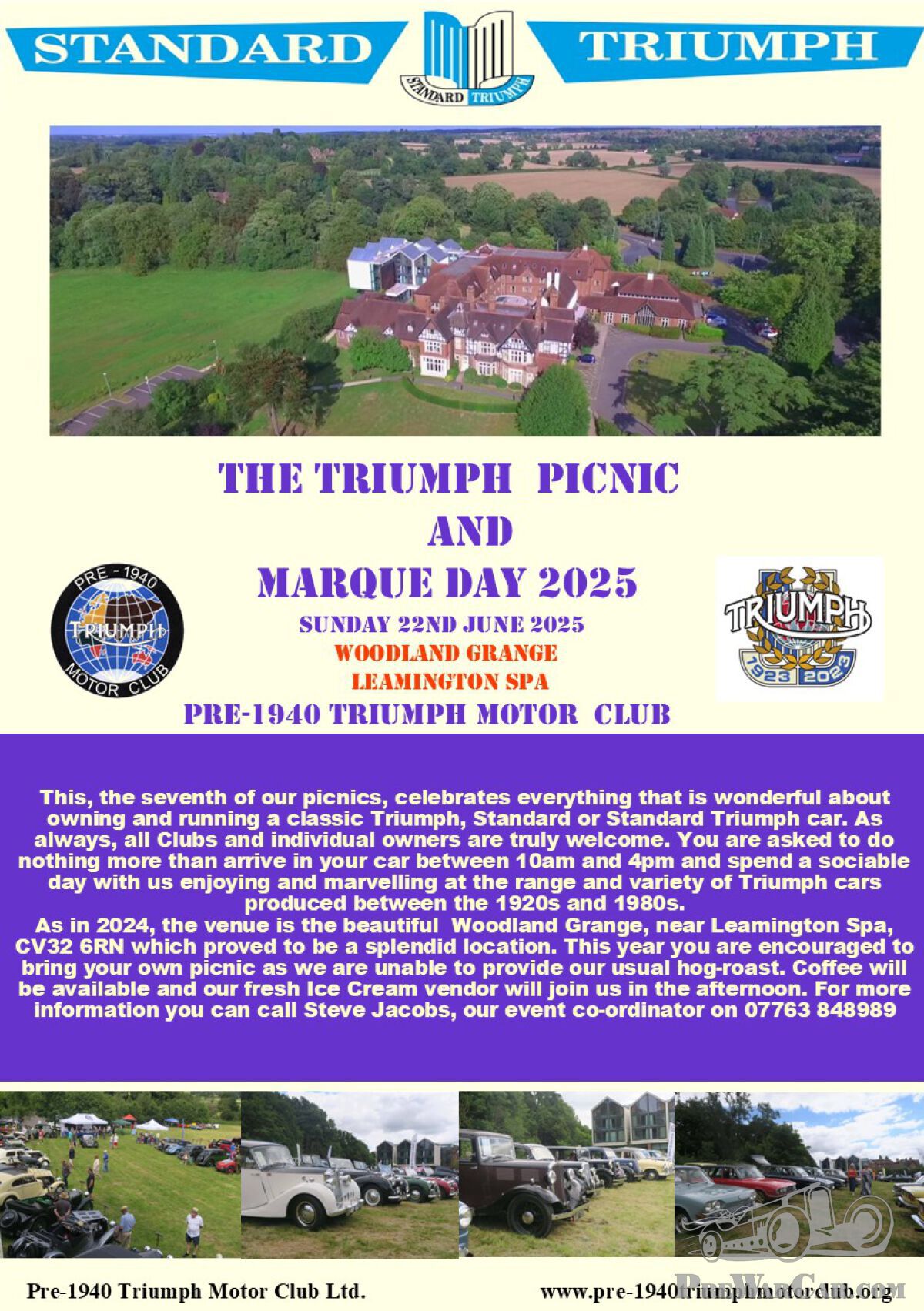 Sunday 22nd June is The Triumph Picnic and Marque Day 2025 at Woodland Grange, Old Milverton Lane, near Leamington Spa, CV32 6RN. No need to book, just turn up in your TR.