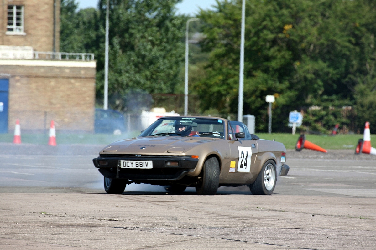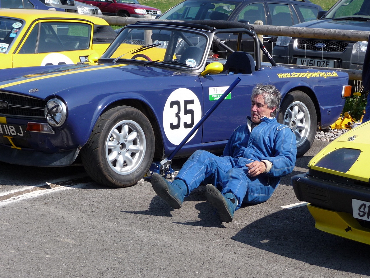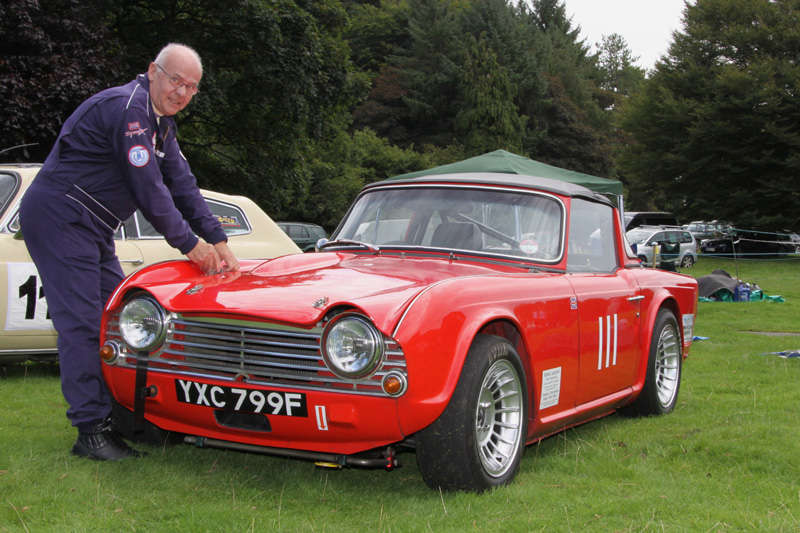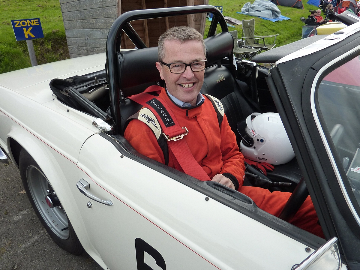 Not your normal TR6. This one is fitted with a 3.9 litre V8 a five speed box and lots of other tricks to make it go faster. Good job it also has Brembo brakes and that Clive has a dozen years of competition under his belt.