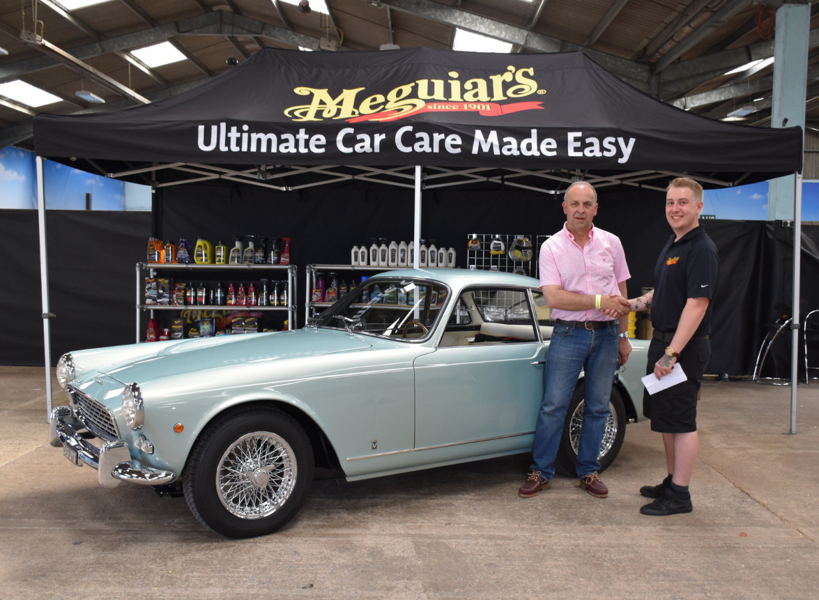 Graham Andrews, the new Italia Registrar for the TR Register receives his prize from Meguiars for winning the masterclass with his Italia at the 2017 TR International Weekend.