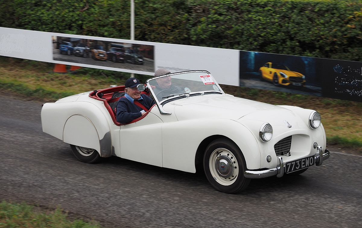 Monte Carlo winner and retired professional rally star Paddy Hopkirk gave over 17,000 spectators a rare treat at the Kop Hill Climb event when he took to the wheel of the TR Register owned 'TS2' to lead a cavalcade of Triumph TRs up the famous Buckinghamshire venue.