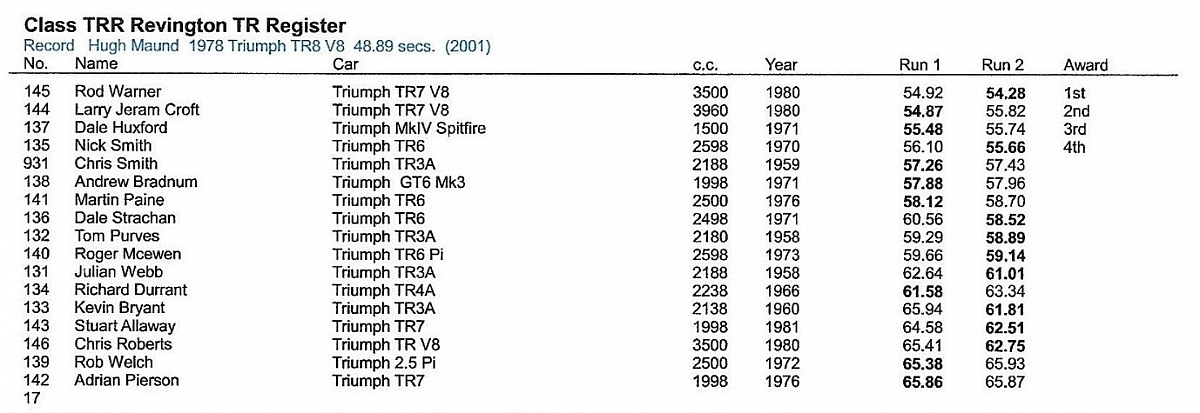 The Revington TR/TR Register Championship (Class TRR) fielded one of the largest entries (17) of the season – (that’s numeric – I wouldn’t like to comment on the overall weight of the drivers!)