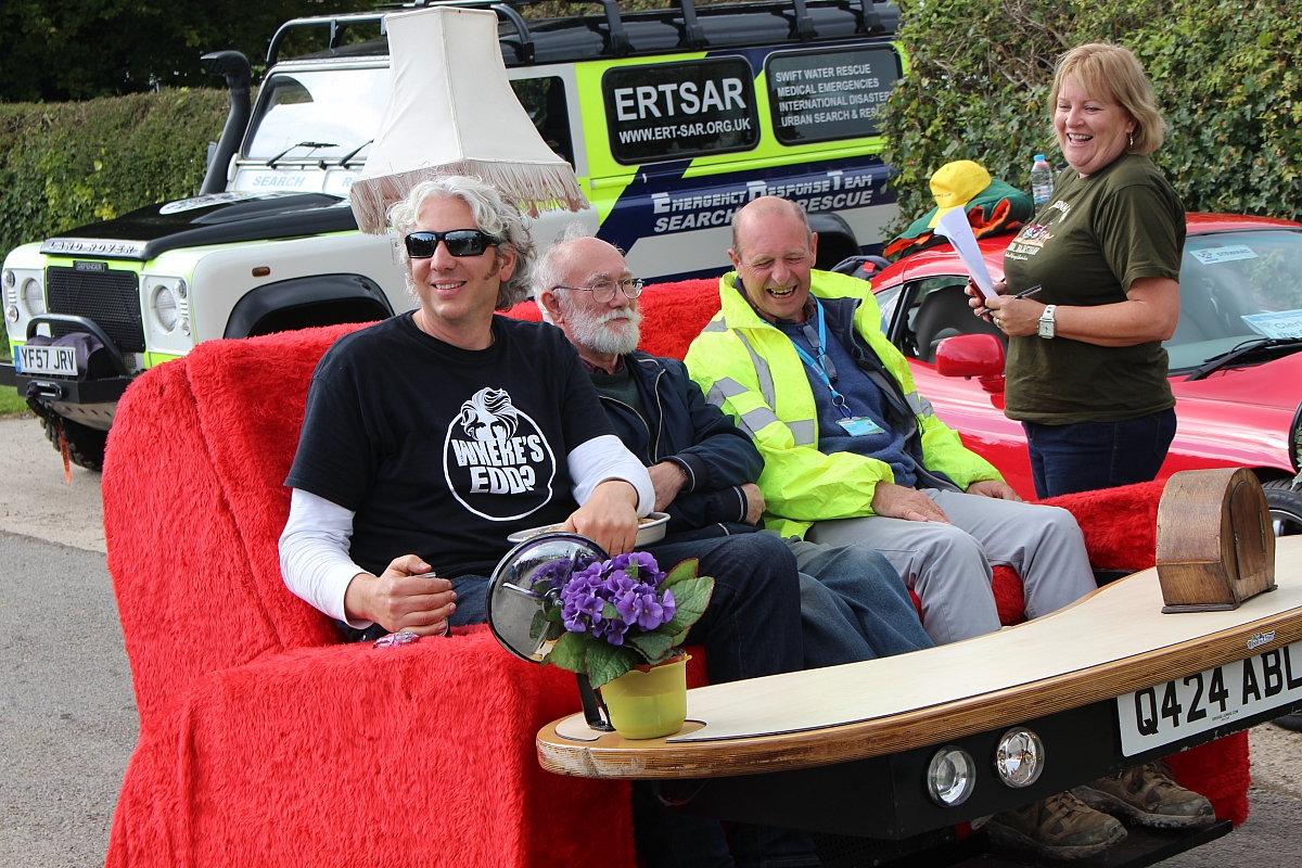 The crowds couldn't believe their eyes when the road legal sofa for three, complete with pizza dish steering wheel and flower pot indicators took a run.