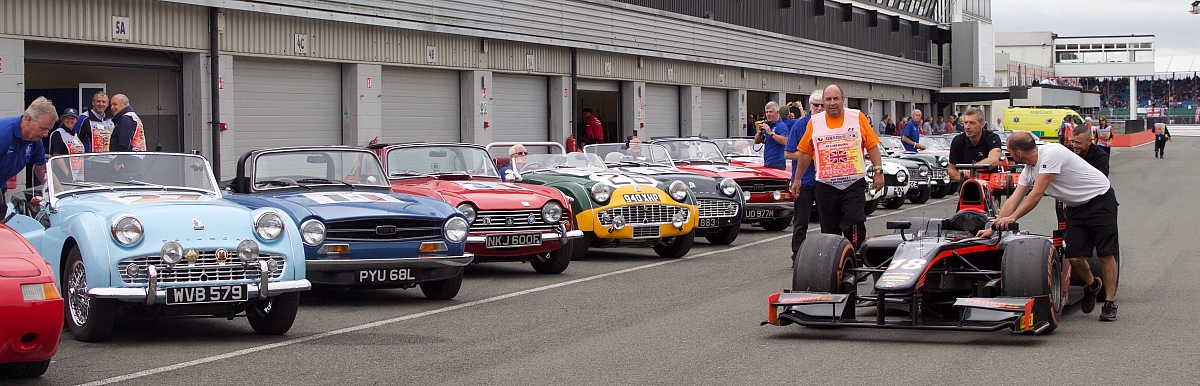 Those fans were also treated to another extra special feature of this year's British Grand Prix, a drivers parade featuring exclusively Triumph TRs provided by the TR Register Car Club to chauffeur the worlds top drivers around one full lap of the circuit in order for them to be seen up close and personal by the fans in the terraces.