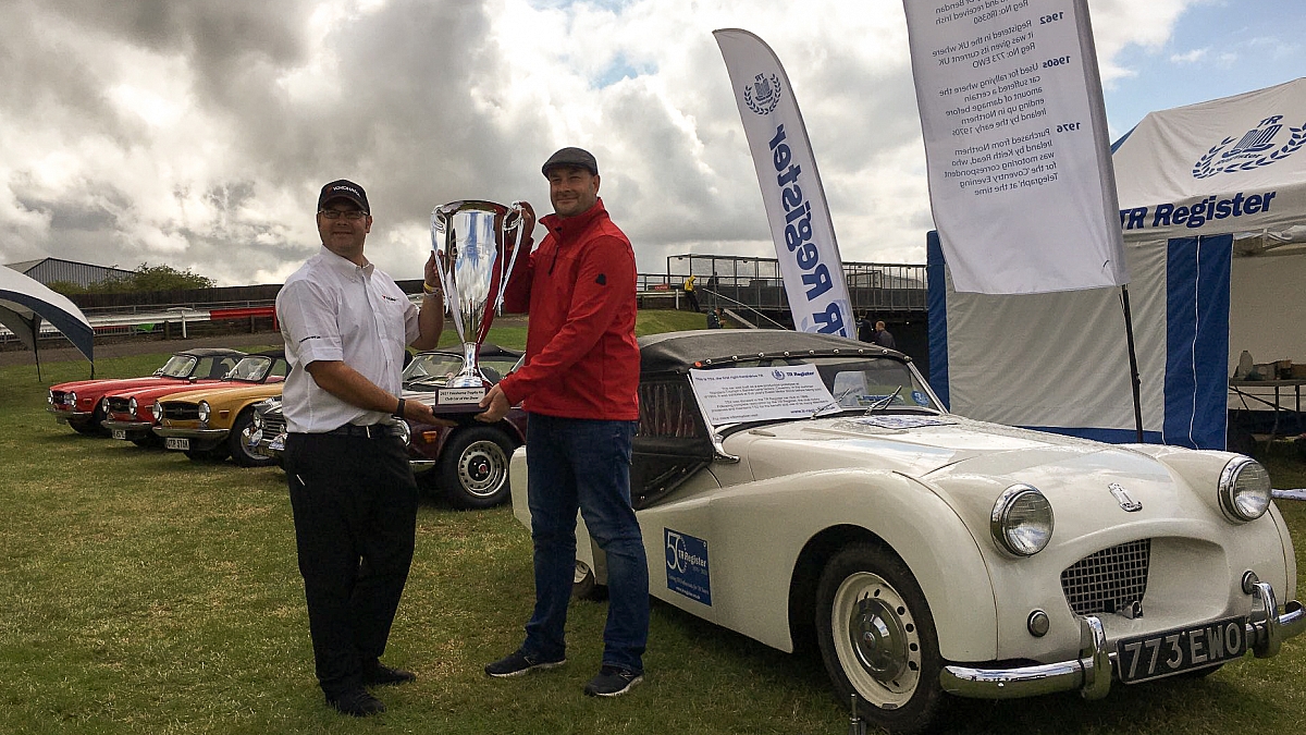 Wayne Scott, Club Press Officer who drove the car and organised its appearance on the club stand said, "It was a total surprise and honour to receive this prize on behalf of the TR Register for TS2. The whole club has a stake in this wonderful little car and its always a privilege to get the opportunity to share that story with others. There were moments this weekend whilst peering through misted up windows in less than watertight wet weather gear whilst trying to pick my way through flooded roads in the rain that I wondered if it was all worthwhile, well it most definitely was. This is a wonderful achievement for the club and our lovely little TR2. In particular a big congratulations to Julian Taylor, the Trustees, Keith Read the original donor and all those who have a hand in keeping TS2 on the road and looked after for the benefit of club members.”