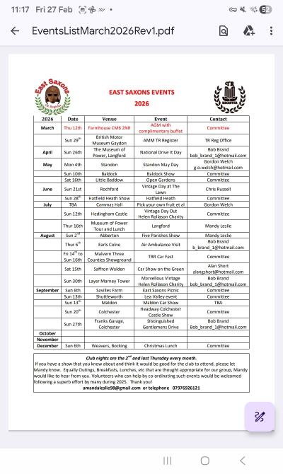 MEMBERS AND FRIENDSThe years are whizzing by and we enter 2026 with another years TR motoring and ca...