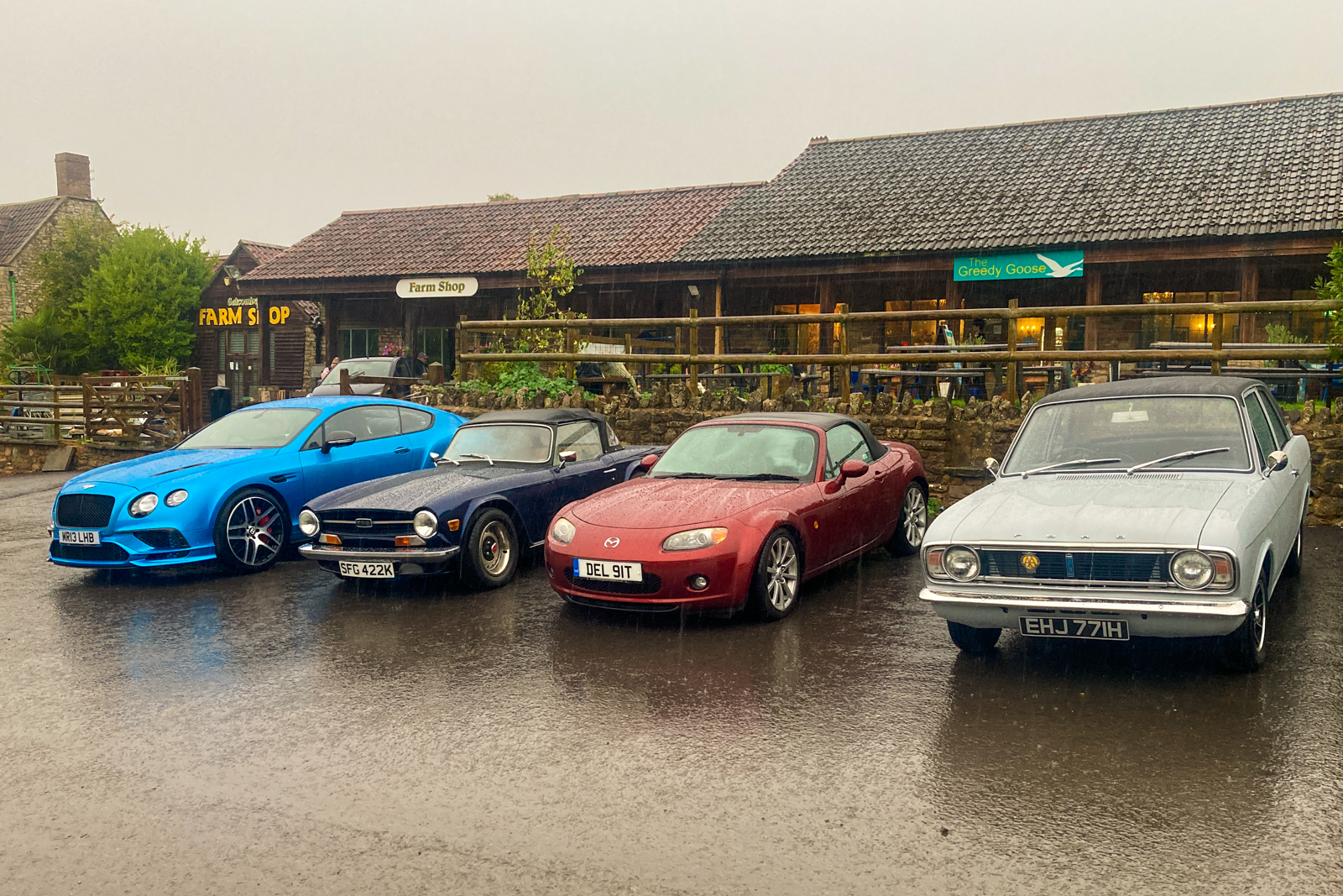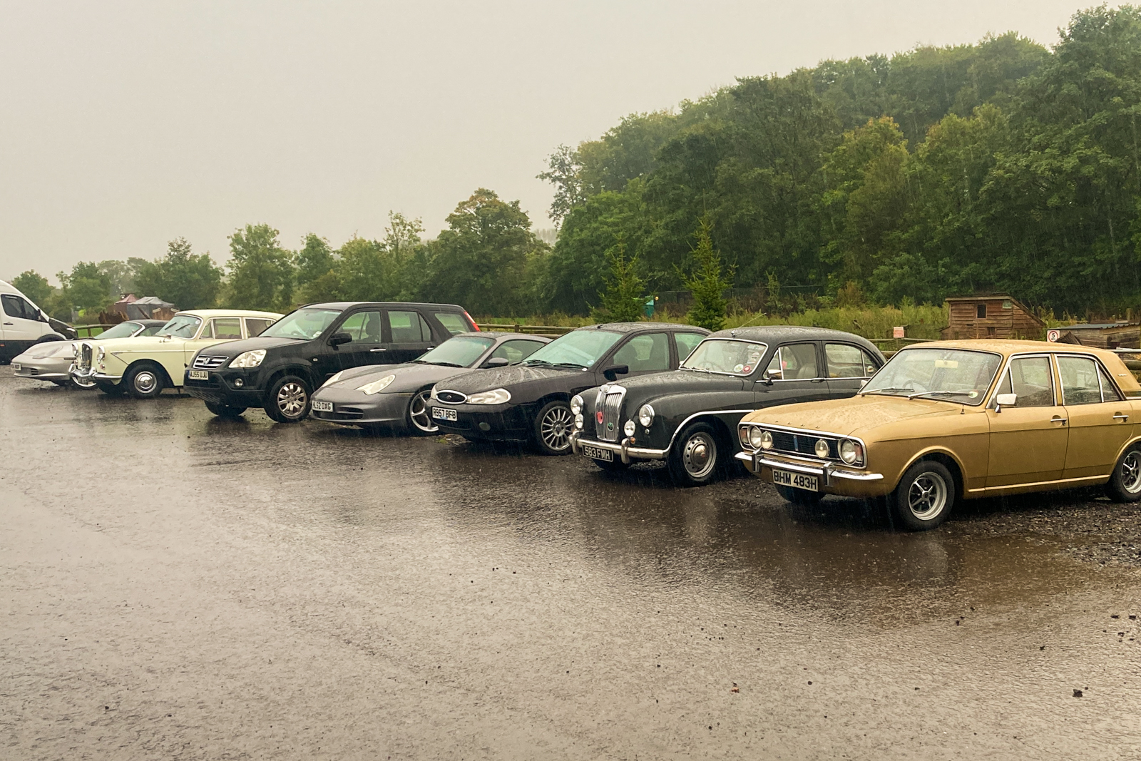 We booked our usual table of 12 for breakfast and there were 21 of us there in the end. A hardy lot these TR drivers. We were paying much attention to the progress of the thunderstorm overhead as several of us were moving on to Rob Lovell's for an apple and pear picking session.