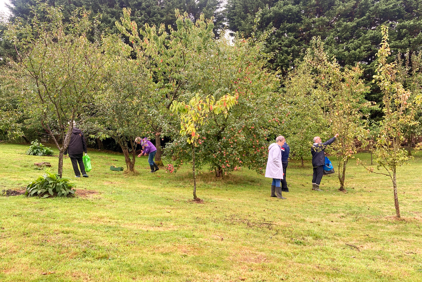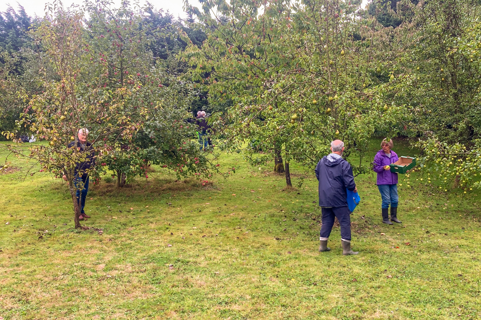 As it turned out the storm was kind to us and we enjoyed coffees and cakes kindly laid on by Rob before we went out to his fruit trees pick as much fruit as we wanted. Thanks Rob, very good of you.