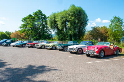 A good turnout despite the weather, hence hoods temporarily flipped up to keep seats dry whilst park...