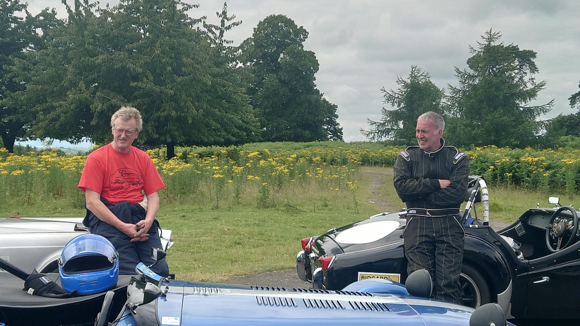 This is where my luck changes as whilst I have robust gloves and proper eye protection – (yes nearly time to wince ) the angle grinder kicks out and shreds my jeans only just grazing my inner leg above the knee ……. the “what if’s” still haunt me writing this. Finally, all fixed and loaded I arrive at Loton Park, a wonderful deer park setting and a great track layout and surface to race on. I unload my black 3a at the top of the grassed parking and camping area only for the trailer ramp to bounce damaging the OSF wing- the air was blue with self annoyance and frustration – but at least the 3 bad luck things were out the way……